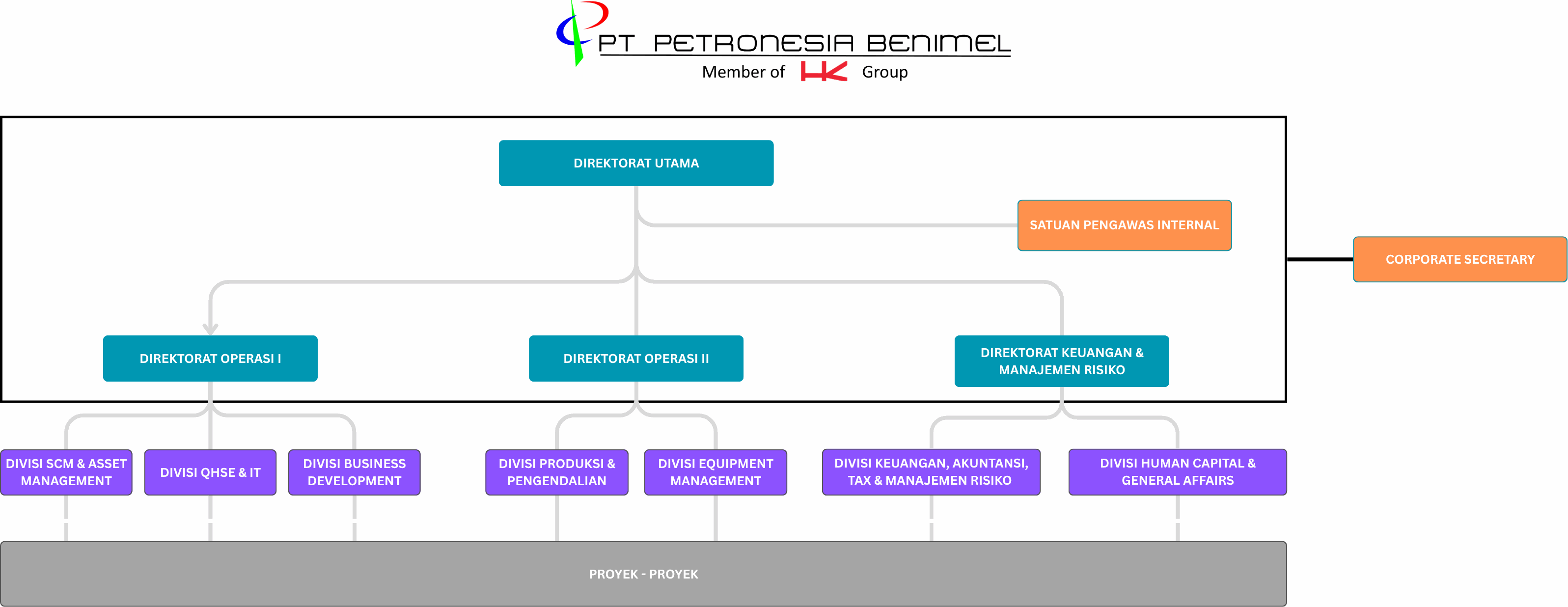 Sebagai bagian dari Badan Usaha Milik Negara (BUMN), PT Petronesia Benimel berkomitmen penuh menerapkan tata kelola perusahaan (Good Corporate Governance atau GCG) dengan sebaik-baiknya sebagai salah satu spirit utama dalam rangka mencapai tujuan perusahaan yang berkelanjutan.